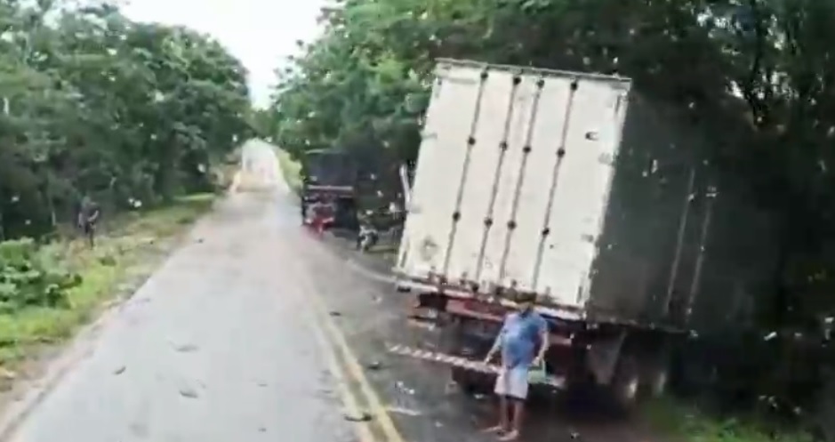 Duas carretas e um caminhão-baú se envolveram em um acidente na madrugada desta terça-feira (21) na BR-349, por volta das 3h, em um trecho próximo ao trevo da localidade do Mocambo, em Santa Maria da Vitória.