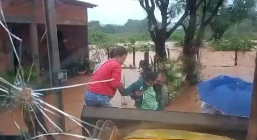 Em imagens feitas por moradores é possível ver muitos pontos de alagamentos, pontes interditadas, idosos sendo carregados, além de pessoas sendo transportadas em uma pá carregadeira e barcos improvisados.