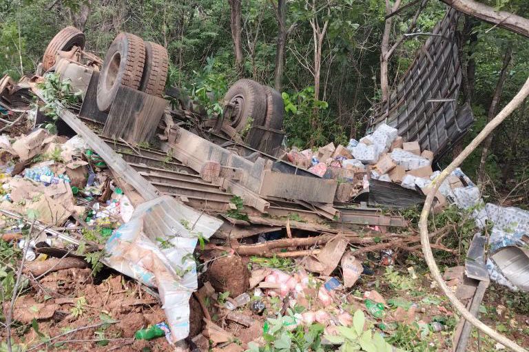 O motorista, que não tive a identidade revelada, perdeu o controle do veículo e tombou na ribanceira. Além dele, o ajudante também viajava na cabine do veículo. Os dois ficaram presos às ferragens e não resistiram aos ferimentos.