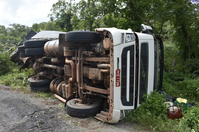 Conforme informações do Gazeta5, o acidente aconteceu após o motoristas tentar desviar de uma caminhonete que invadiu a pista contrária. “E o veículo só não caiu em um precipício, de quase trinta metros, porque um dos compartimentos ficou preso em uma árvore”. Ninguém ficou ferido.