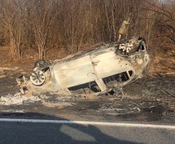 De acordo com as informações e imagens divulgadas, o veículo tombou na estrada e foi rapidamente consumido pelas chamas. As magens mostram o carro de rodas para cima, completamente destruído pelo fogo, enquanto a vegetação ao redor da estrada também foi atingida pelas chamas. O incêndio se espalhou rapidamente, afetando a área ao longo da via.