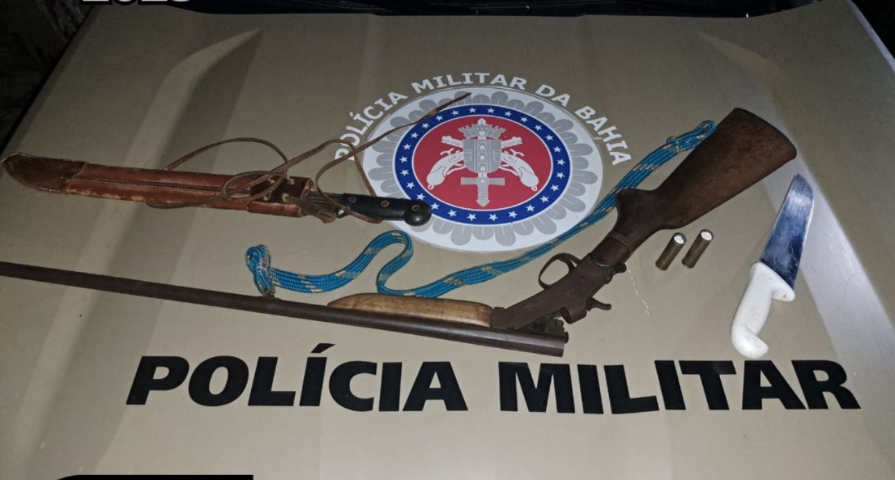 A arma foi entregue à Polícia Militar por moradores da área. Com a informação do possível paradeiro dos suspeitos, a guarnição localizou os envolvidos na zona rural de Santo Antônio, onde, além da espingarda, foi encontrada munição e duas facas no veículo utilizado pelos suspeitos.