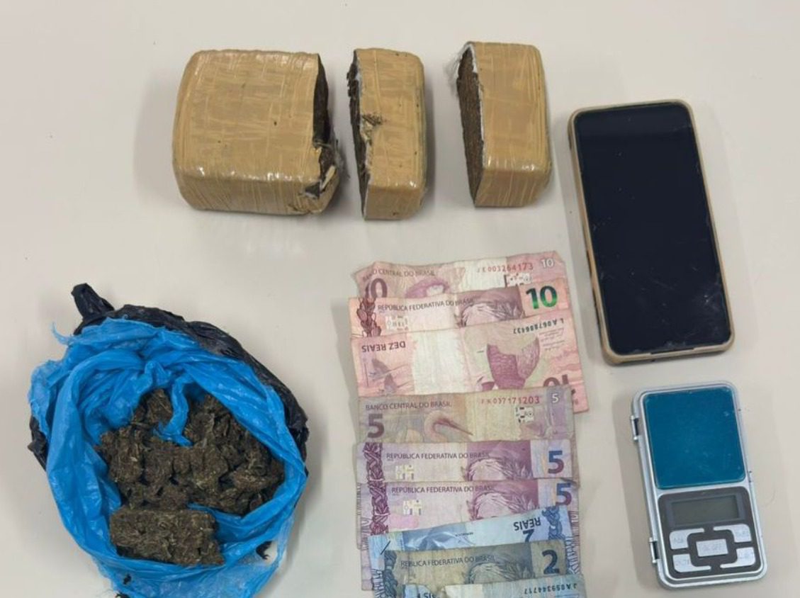 Segundo a PM, ao perceber a aproximação da viatura, o suspeito identificado como I.B.S., 24 anos, tentou se afastar rapidamente, apresentando comportamento suspeito e realizando movimentos bruscos na cintura e na sacola que carregava. Na abordagem, foram encontrados porções de cocaína, material semelhante à cannabis e dinheiro fracionado.
