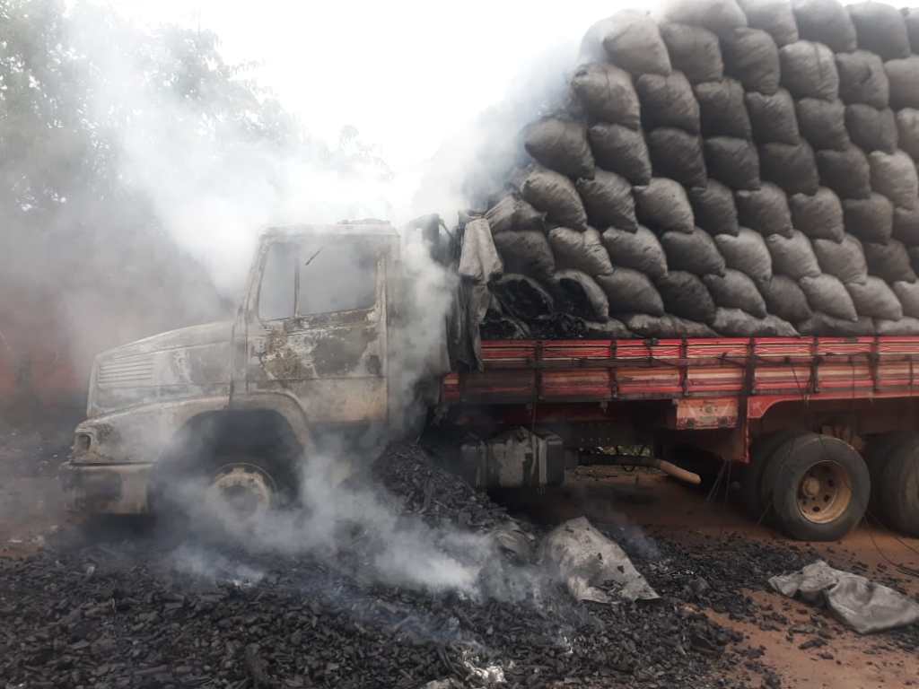 O fogo só foi completamente controlado por volta das 11h30, após mais de seis horas de trabalho. A cabine do caminhão Mercedes Benz 1620 ficou destruída pelas chamas. Parte da carga de carvão foi retirada para evitar que o fogo se alastrasse ainda mais.