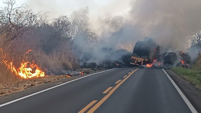 O incidente aconteceu, na quinta-feira (22/8), por volta das 17h, no km 46. De acordo com o g1, o motorista da carreta, que não ficou ferido, disse que, antes do acidente, fez uma manobra em forma de L na rodovia, e o veículo começou a pegar fogo. Parte da carga de algodão ficou completamente destruída.