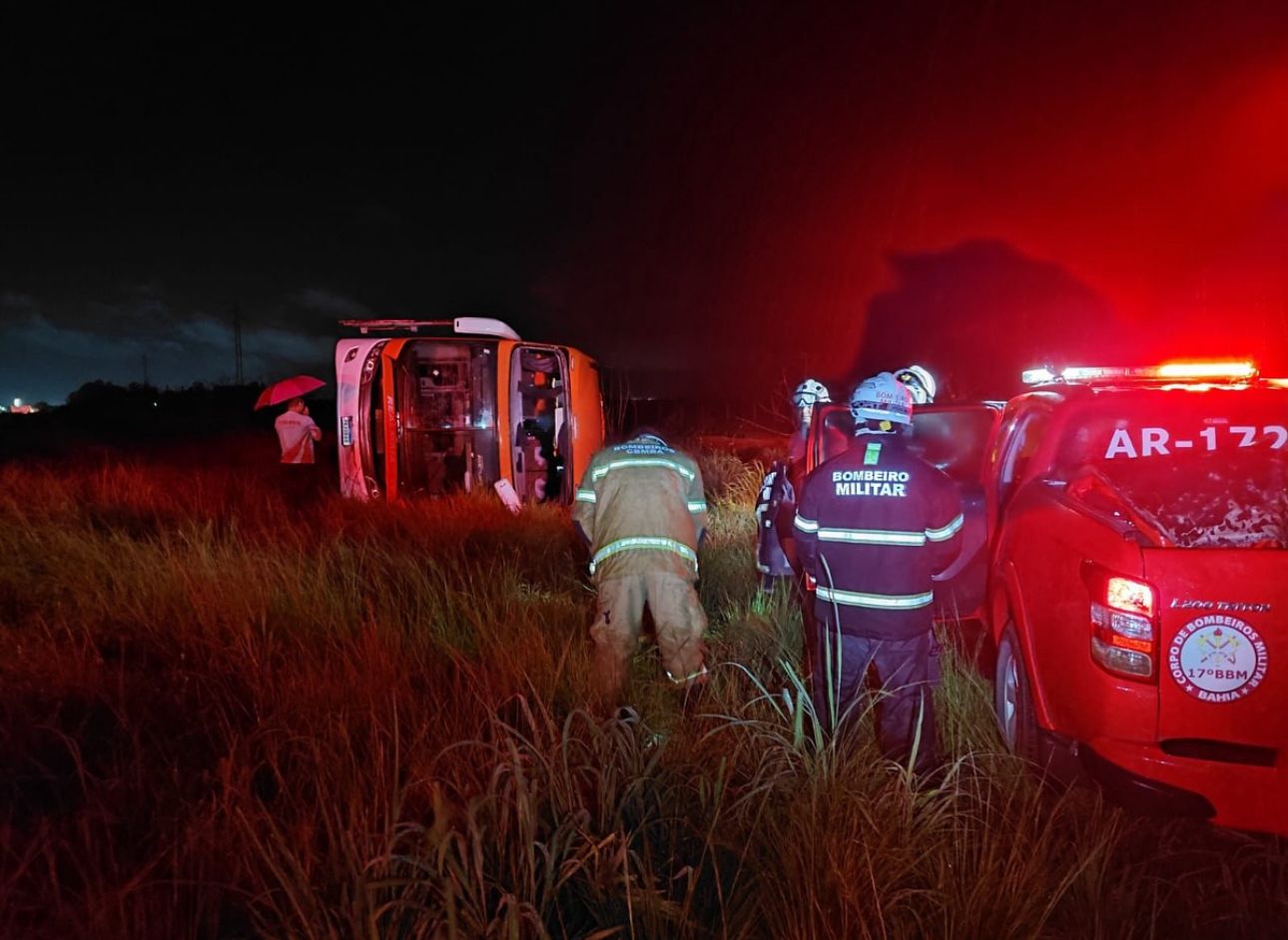Um ônibus com 42 passageiros tombou na madrugada desta quarta-feira (11) na BR-020, no trecho do município de São Desidério, no oeste da Bahia. O acidente aconteceu por volta da 1h30, na altura do km 139 da rodovia, conforme informações da Polícia Rodoviária Federal (PRF).