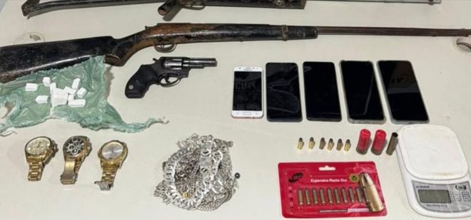 No imóvel, os policiais localizaram e apreenderam diversos itens, que foram encaminhados para a 24ª Coordenadoria Regional de Polícia do Interior (CORPIN) para formalização da ocorrência: