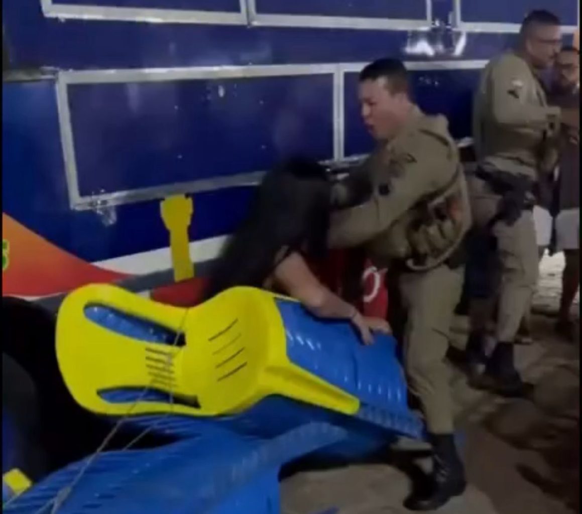 Um policial lotado na 4ª CIPM de Macaúbas, na região sudoeste da Bahia, foi flagrado agredindo uma mulher durante um evento no distrito de Açude. Imagens que circulam nas redes sociais mostram um momento de forte tensão ocorrido na noite do último sábado (17).