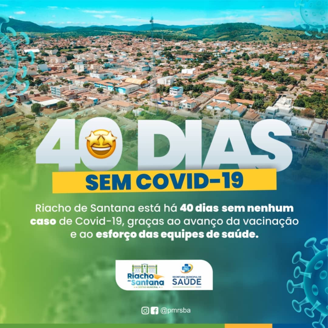 Segundo a Secretaria Municipal de Saúde, a cidade de Riacho de Santana completou nesta última terça-feira(19), 40 dias sem registrar novos casos de pessoas com Covid-19. O avanço da vacinação é apontado pela gestão com um dos principais motivos da queda de casos e de mortes pela doença no município.