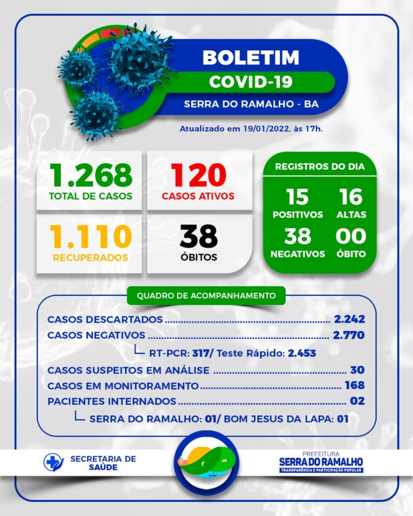 O município de Serra do Ramalho conformou no boletim desta quarta-feira(19) mais 15 casos confirmados de coronavírus (Covid-19).