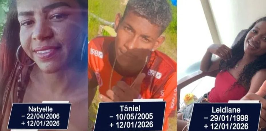 Os jovens foram identificados como Tâniel da Silva Barros, de 20 anos, Natyelle Santos da Silva, de 19, e Leidiane de Jesus da Silva, de 27 anos.