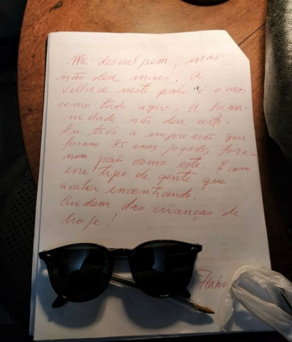 Na tarde de domingo (3) ele foi visto passeando pela Urca. Amigos dizem que ele decidiu pegar um táxi e ir para o sítio da família. Na mensagem, divulgada pelo jornal O Globo, o artista estaria decepcionado com os rumos da humanidade ; “Me desculpem, mas não deu mais. A velhice neste país é (…) como tudo aqui. A humanidade não deu certo. A impressão que foram 85 anos jogados fora num país como este e com esse tipo de gente que acabei encontrando. Cuidem das crianças de hoje”, disse na carta.