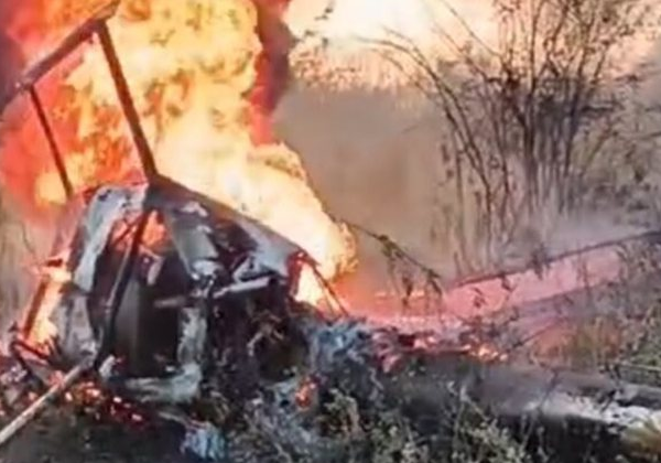 Um helicóptero caiu na zona rural de Caruaru, no interior de Pernambuco, nesta segunda-feira (9). Duas pessoas morreram e uma conseguiu sobreviver. Populares que estavam na região próxima da queda filmaram a aeronave no chão e em chamas.