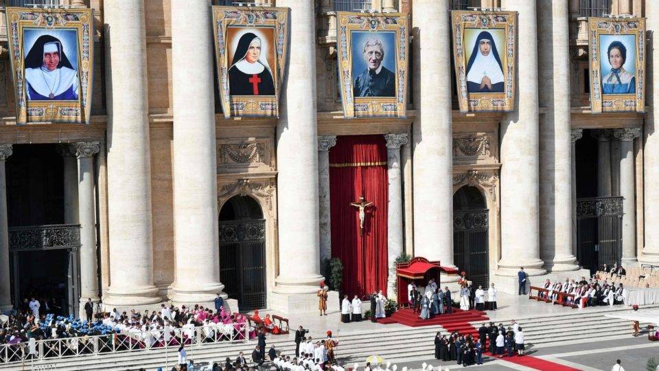 “Em honra da Santíssima Trindade, pela exaltação da fé católica e para incremento da vida cristã, com autoridade de nosso senhor Jesus Cristo, os santos apóstolos Pedro e Paulo, depois de haver refletido longamente, ter invocado a ajuda divina e escutado o parecer de muitos irmãos do episcopado, declaramos e definimos santos os beatos: John Henry Newman, Giuseppina Vannini, Mariam Thresia Chiramel, Dulce Lopes Pontes e Marguerite Bauys”, declarou o Papa, em latim, durante a cerimônia.