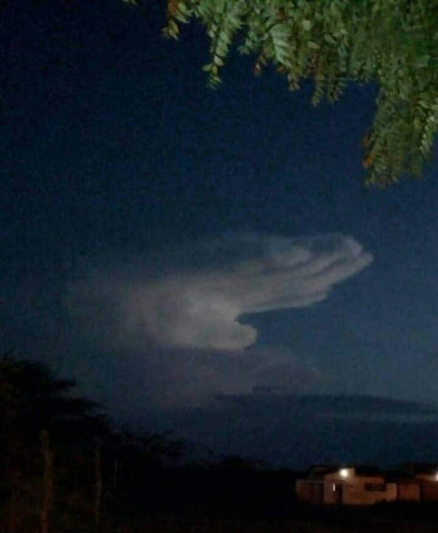 Uma nuvem em formato de uma mão foi vista por populares na noite desta quinta-feira (09/01) nas cidades de Assunção e Juazeirinho, região do Cariri paraibano. As informações são do De Olho Cariri.
