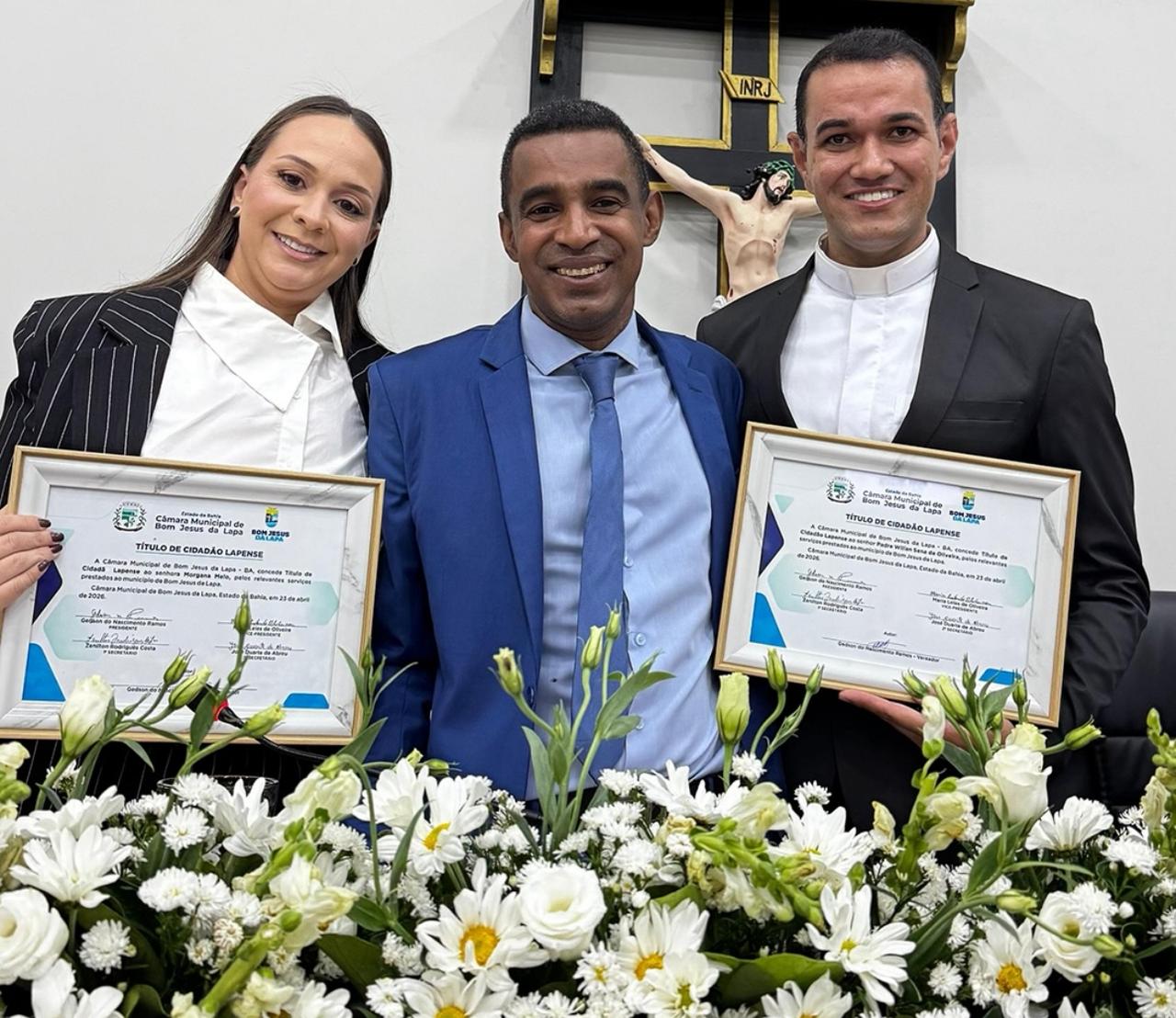Duas importantes lideranças que atuam diretamente no bem-estar da população de Bom Jesus da Lapa foram homenageadas com o Título de Cidadão Lapense: a biomédica e citologista Dra. Morgana Melo e o Padre Willian Sena.